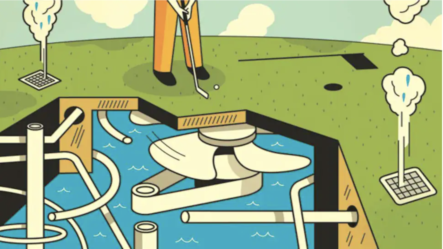 Khi hệ thống SubAir được sử dụng để hút nước ra khỏi các green, các máy bơm bổ sung và cơ chế thoát nước có thể được thêm vào để kéo nước xa hơn khỏi green và giải phóng ở những khu vực không ảnh hưởng đến việc chơi.